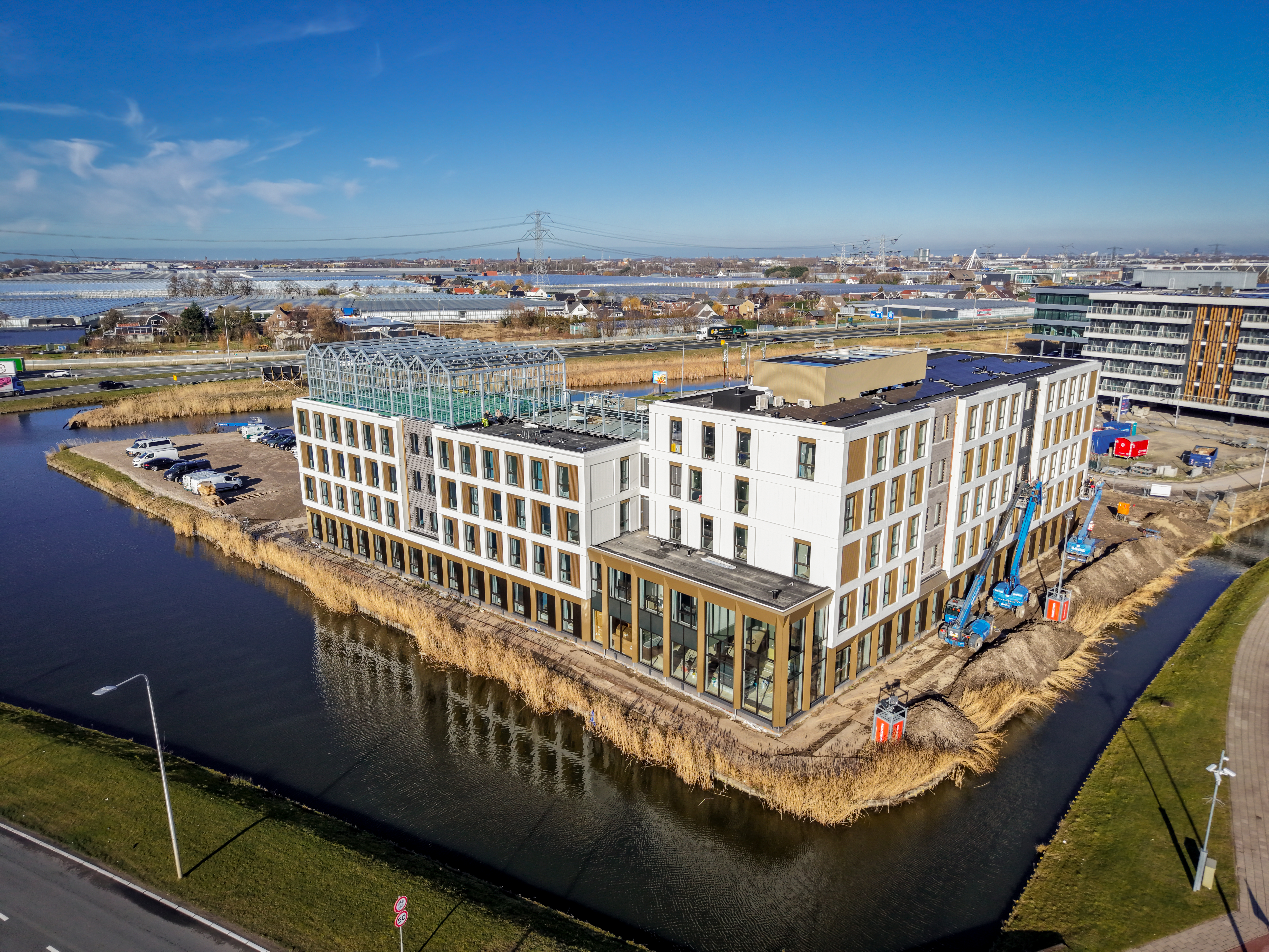 Het wooncomplex is gebouwd door Hercuton in opdracht van NL Realty, op aangeven van VastgoedProfs. Dijkstaal was verantwoordelijk voor de engineering, productie en montage van de staalconstructie. Het glas is verzorgd door IFS Building Systems en de RVS kabels zijn geleverd door CarlStahl Benelux. De sportkooi is vormgegeven als een kas en vormt daarmee een duidelijke knipoog naar het Westland.