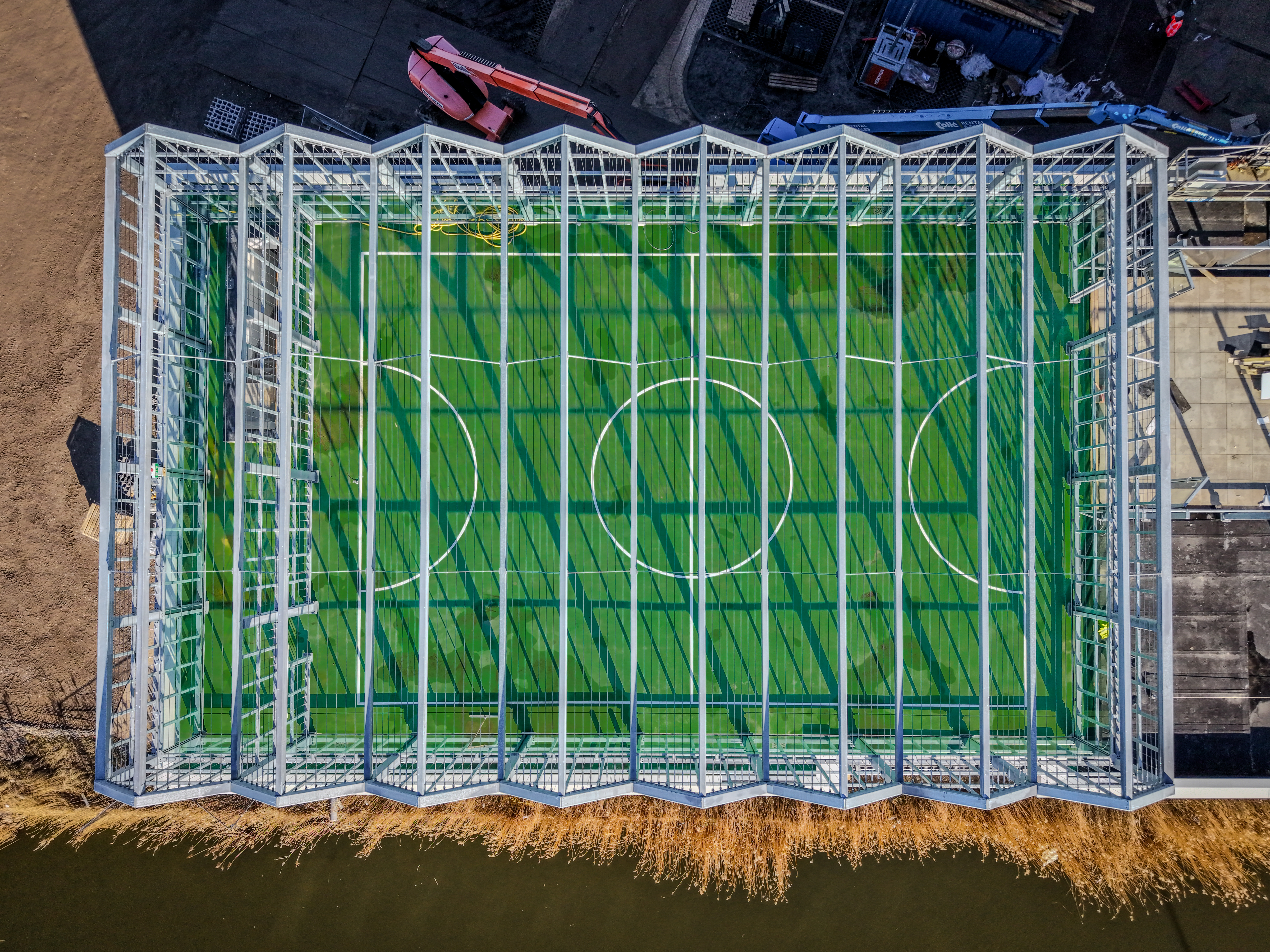De montage op het dak van het wooncomplex vroeg om een strakke planning en een nauwkeurige afstemming tussen alle betrokken partijen. Dankzij deze aanpak is een unieke sportvoorziening gerealiseerd die niet alleen functioneel is, maar ook architectonisch aansluit bij de omgeving.